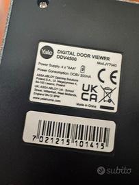 Digital door viewer ddv4500 mod. JY7040. Spioncino elettronico Yale con un pratico display a colori. Perfettamente funzionante e facile da montare. Vendo per cambio modello. Immagine chiara sullo schermo Facile utilizzo - basta la pressione del pulsante Spegnimento automatico dopo 10 secondi Veramente semplice da montare - non necessità di attrezzatura Può rimpiazzare lo spioncino meccanico senza lavoro addizionale Caratteristiche: Foro spioncino standard da 14 millimetri Dimensioni 14x8x1 cm il display. Funziona a batterie AAA.