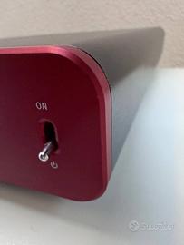 La pannello frontale rosso è allo stesso tempo elegante e distintivo — una vera e propria dichiarazione di stile, perfetta per qualsiasi ambiente d’ascolto.
