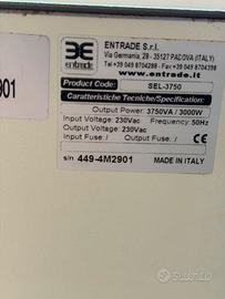 Stabilizzatore di tensione volt 220 monofase della ditta Entrade di Padova modello SEL 3750 da 3000w continui con punte fino a 6000w