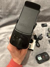 Stabilizzatore Gimbal con giroscopio per GoPro Hero 4 comprensiva di batterie, caricabatterie e telecomando wireless. Iphone messo per far vedere come si usa, per chi fosse interessato anche a quello scrivetemi in privato.