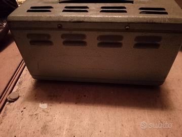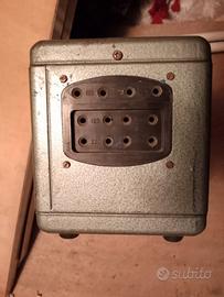 Stabilizzatore di tensione vintage, specificamente un modello "Stereovideon" di marca F.E.D.I. S.A. Milano. Questi dispositivi negli anni '60, erano utilizzati principalmente per proteggere e garantire il corretto funzionamento di apparecchiature sensibili come i televisori in aree con frequenti sbalzi di tensione.