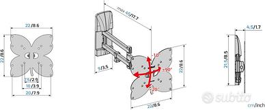 Staffa Meliconi SlimStyle Plus 200 SDR Supporto con Doppio Braccio, Ultra Sottile da Parete per TV a Schermo Piatto da 26’’ a 40’’, Gommini Protettivi, VESA 100x100, 200x200, Bianco.