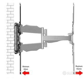 Consente di ripiegare il televisore contro il muro e può essere esteso verso l'esterno mantenendo la sua posizione centralizzata, inclinata e ruotata in qualsiasi direzione desiderata.