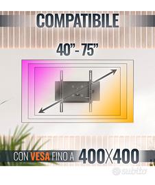 Vendo staffa inutilizzata per tv da 40 a 75 pollici dino a 90 kg di peso. Super resistente col bravcio allungabile. Presa su amazon anni fa. Foto prese da amazon.