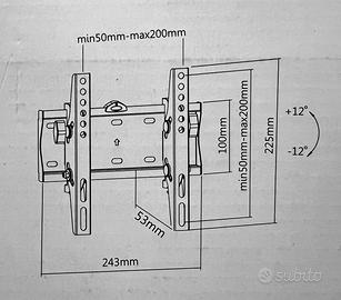 Staffa TV fissa a parete 23"- 42" con Tilt -/+ 12º compresa di bulloneria e spaziatori. Formati VESA: 75x75 100x100 200x100 200x200
