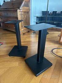 Stand di accurata produzione artigianale, robusti, eleganti e con ottime qualità sonore. Misurano 63 cm di altezza, la base è di cm. 30 X 30 mentre la base di appoggio dei diffusori è larga 20 cm. e profonda 30. I piedini sono regolabili. Sono visibili a Verona. Dato il peso preferisco non spedire