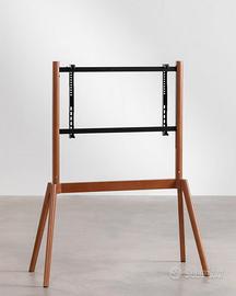 Supporto da pavimento per TV in acciaio e legno. Cavalleto solido e dal design accattivante, evita di diver forare il muro. Design naturale e moderno, questo supporto sostiene un televisore fino a 40 kg. Compativile VESA