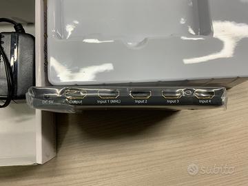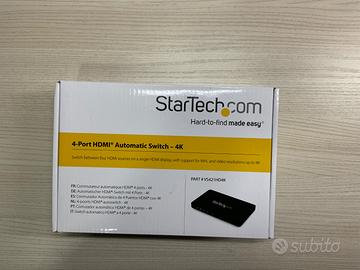Vendo STARTECH Switch HDMI a 4 porte - Commutatore HDMI 4x1 - Ultra HD 4k 60Hz (VS421hd4k). Il dispositivo consente di alternare l'utilizzo di quattro sorgenti video HDMI su un singolo display, con il supporto delle risoluzioni Ultra HD. Questo switch video HDMI a 4 porte consente di condividere un proiettore o un display HDMI 2.0 con quattro sorgenti video HDMI 2.0. I quattro ingressi video sonoindipendenti supportano ciascuno una risoluzione 4K a 60 Hz Immagini di qualità straordinaria con supporto della tecnologia Ultra HD 4K a 60 Hz. Lo switch HDMI HDCP 2.2 permette di sfruttare la funzionalità HDR (High Dynamic Range) delle sorgenti video HDMI 2.0 e conferirla al display UHD 4K a 60 Hz, garantendo risoluzioni di uscita fino a 3840x2160p a 60 Hz. Grazie al supporto per i dispositivi HDMI 2.0, lo switch è in grado di trasmettere a una larghezza di banda massima di 18 Gbps e si rivela la soluzione ideale per le attività informatiche ad alta risoluzione. In ogni caso è garantita la retrocompatibilità con i display 4K a 30 Hz e con le risoluzioni più basse. Al momento ne ho disponibili 5 (il prezzo dell'annuncio di riferisce al singolo pezzo).