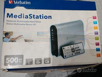 Vendo stazione multimediale Verbatim HD 500 Gb di capienza, completa di scatola originale, cd software, libretto istruzioni, telecomando e cavi per il collegamento