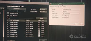 Steinberg-Yamaha Ur Rt-2, interfaccia audio con trasformatori Rupert Neve RND, buono stato con qualche graffio sulla parte superiore ma nulla di drammatico. Utilizza due classici trasformatori Rupert Neve dal suono "caldo" e due preamp Yamaha di qualità. I due trasformatori sono disinseribili singolarmente e il vantaggio è che il suono catturato entra digitalmente direttamente da Usb senza ulteriori passaggi analogici. Non so se sono ancora validi i codici software che sono dentro la scatola. Imballo, trasformatore esterno, cavo usb sono tutti originali. Credo sia anche in garanzia ma non trovo più lo scontrino. Grazie dell'attenzione