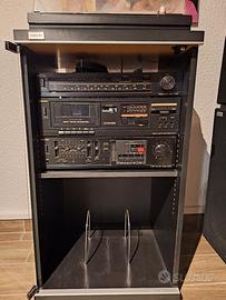 Lettore vinili, radio, lettore music cassette, equalizzatore, 2 casse da 80w, con mobiletto