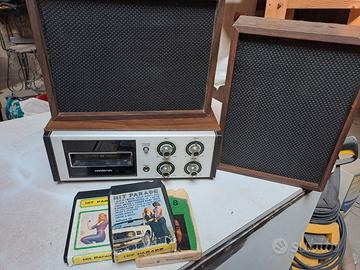 Stereo 8 con casse perfettamente funzionante con 34 cassette da i pooh,ranieri,battisti,ecc