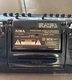 Stereo AIWA Cassette recorder CS-WN 33, radio AM e FM, riproduce cassette e le registra. Possibilita’ di usarla tramite cavo elettrico oppure senza fili con l’uso di 6 pile da 1,5 volt l’una come da immagini. Funzionante. Buonissime condizioni come da foto. Vendo per inutilizzo.