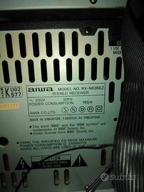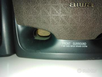 stereo Aiwa usato , il lettore cd non funziona , probabilmente bisogna cambiare il laser o smontarlo e pulirlo, la radio è funzionante e il lettore cassette funzionava ma ora non ho più cassette per vedere se va ancora , casse con surround a 4 vie perfettamente funzionanti , stero utilizzabile per collegarlo alla tv per sfruttare il surround,possibilità di collegare anche subwoofer solo contatti telefonici