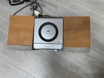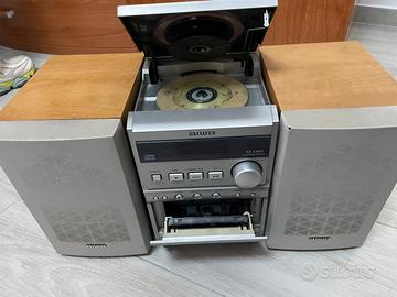 Vendo sistema micro Hi-Fi Aiwa modello XR-EM20, perfettamente funzionante e in ottime condizioni estetiche. Un classico del design anni '90/2000, compatto e potente, ideale per chi vuole riascoltare CD e musicassette con una buona qualità audio. Caratteristiche principali: • Lettore CD: Caricamento dall'alto (Top Loading). • Piastra per Cassette: Con funzione di registrazione. • Radio AM/FM: Con sintonizzatore digitale. • Casse acustiche: Due diffusori originali con elegante finitura in legno e griglie frontali grigie. • Ingresso AUX: Per collegare dispositivi esterni (smartphone, tablet, ecc.). • Uscita Cuffie: Jack frontale da 3.5mm. Lo stereo è stato tenuto con cura. È un'ottima soluzione per una camera, uno studio o per chi colleziona supporti vintage.