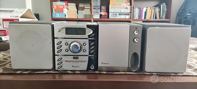 Stereo a 4 moduli indipendenti, due casse, subwoofer, amplificatore e controllo con lettore CD. L'oggetto è in condizioni discrete ed è funzionante, con segni di usura.