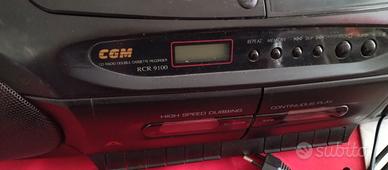 Questo dispositivo è un classico Boombox (stereo portatile) multifunzione del marchio CGM, un vero simbolo dell'era musicale degli anni '90. Caratterizzato dal tipico design arrotondato "a guscio" di colore nero, rappresenta perfettamente il centro musicale domestico di quel periodo. 【STATO DI FUNZIONAMENTO - MASSIMA TRASPARENZA】 L'apparecchio è stato testato e presenta le seguenti condizioni: ✅ CASSETTE (OK): Entrambi i vani (A e B) funzionano correttamente. Supporta il "High Speed Dubbing" (duplicazione rapida). Meccanica fluida. ✅ RADIO (OK): Ricezione AM/FM perfetta. L'antenna è integra e la sintonia analogica è precisa. ✅ AUDIO: Casse stereo integrate con suono pulito, caldo e tipico dell'epoca. ❌ LETTORE CD (NON FUNZIONANTE / DIFETTO MECCANICO): Il lettore non legge i dischi e lo sportellino del CD non si chiude correttamente.