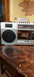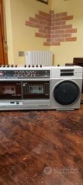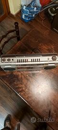 ritrovo da svuota cantina non mia vendo vecchio ghettoblaster o boombox di moda negli anni 80 marca siemens modello club rm 775. funzionante sia con batterie sia che collegato all'alimentazione di rete. esteticamente in ottimo stato, tenuto molto bene. aveva solo il cavo dell'alimentazione rovinato e quindi l'ho tagliato e sostituito giuntandolo con un mammut e quando il vano delle batterie è chiuso non si vede per niente. radio funzionante mentre i due tape delle musicassette si sentono girare ma l'audiocassetta non gira, probabile siano le cinghie usurate. vendo quindi come danneggiato per collezionisti o per ricambi o per chi in grado di ripararlo o semplicemente come oggetto da vetrina, teatro, cinema o ristoranti e pizzerie per ricreare ambienti anni 80. lunghezza 57 cm alto 20 centimetri