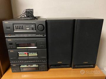 Compatto Aiwa: amplificatore equalizzatore, sintonizzatore radio , lettore CD, doppia cassetta audio e 2 CASSE come da foto