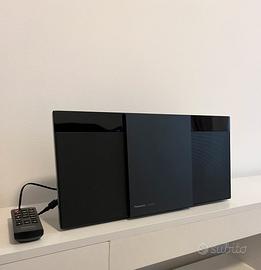 Sistema stereo compatto Panasonic SC-HC302 (compatibile anche con SC-HC300). Condizioni pari al nuovo Completo di manuali e istruzioni originali Design elegante e salvaspazio, ideale per casa o ufficio Funzioni: lettore CD, radio FM, connessione Bluetooth, USB, AUX V Qualità audio Panasonic Hi-Fi