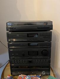 STEREO con piatto per LP 33 giri vinile. Stereo blocco con casse audio. Il piatto per LP 33 giri e le casse funzionano. Radio e amplificatore funzionano. Il lettore Cd NON funziona Il lettore musicassette NON funziona
