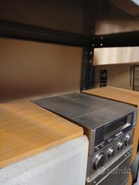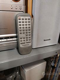 Stereo Panasonic con radio, cassette e lettore DVD. 2 casse in legno e telecomando