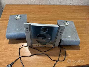 Sistema stereo Philips con finitura grigio e argento. - Design moderno e compatto. - Altoparlanti integrati. - Lettore CD. in ottime condizioni funzionante radio solo lo sportello cd e elettronico e non riesco a fallo alzare per inserire il cd le casse sono smontabili e sporche come dimostro in foto tutto il resto funziona 100% vendo per mancanza di spazio valuto anche le offerte