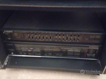stereo da casa composto da giradischi, amplificatore , cd, cassette due sportelli, radio, due casse e mobile con chiusura in vetro.
