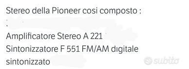 Stereo radio+amplificatore della Pioneer anni 80/90 funzionante.
