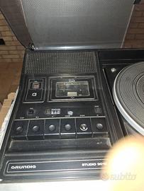 impianto stereo anni 70 con piatto vinili lettore cassette e radio. Completo di casse originali e istruzionj. Piatto funzionante. Radio e lettore cassette da revisionare.