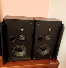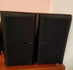 STEREO HiFi Kenwood Perla Nera TESTATO FUNZIONA Ok. Audio Bello dettagliato con Bassi Robusti, sound musicale vera goduria per le orecchie. Estetica ok minimi segni poco e niente Composto da: - Amplifcatore KENWOOD A 45 - Radio Tuner KENWOOD T 85L - Casse Kenwood LS 45. 70w - Cavi Rca per il collegamento Il Preamplificatore, Amplificatore di potenza Ottimo per chi cerca sistema HiFi di alta qualità e affidabile come KENWOOD linea Perla Nera Amplificatore è un integrato Hi-Fi ottime caratteristiche Audio con 6 ingressi, incluso 1 ingresso phono Giradischi, 1 sezione Preamplificatore 1 Finale di Potenza separate, Uscita A - B x 2 coppie di Casse Diffusori utilizzabili Singole o Tutte 4 insieme. DATI TECNICI Potenza 2 x 40 W a (8 ohm) 7 ingressi audio, LD/AUX e VIDEO/DAT Controllo volume motorizzato Mix del microfono Connessioni x 2 sistemi altoparlanti Rapporto segnale/rumore: 96 dB Mis. 360 x 129 x 375 mm Peso: 7,6 kg SINTONIZZATORE KENWOOD T85L stereo digitale AM/FM/LW. Sintonizzazione: Sintetizzatore di frequenza PLL. FUNZIONI: Funzione Timer integrata (per accendi/spegni programmato). Preimpostazione stazioni (Preset). Sintetizzatore di frequenza PLL CASSE KENWOOD LS 45 Costruzione: BASS REFLEX 3 vie Tweeter: 30 mm MidWoofer: 65 mm Woofer: 160 mm Pot.max 70 - 50w Rms Sensibilità: 89 Db. Impedenza: 8 Ohm Risposta in frequenza: 50hz - 20kHz Mis. 47x26x21 cm. P. 4.3 kg. anni 1990 PREZZI Tutti in blocco 350 euro Amplificatore 155 euro Radio Tuner 110 euro Casse Diffusori 135 euro Spedizione in base ai pezzi acquistati