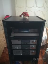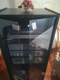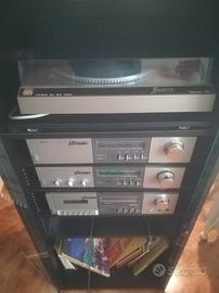Stereo hi fi anni 80 comprato nuovo inizio anni 80, stereo comprensivo di piatto disco, amplificatore sintetizzatore registratore cassette,mobile in legno con ante in vetro ottime condizioni