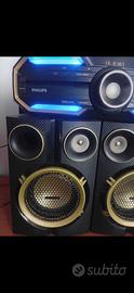 Sistema hi-fi Philips FX25/12 completo di casse originali e telecomando incluso. Pagato circa 250€, ottima qualità audio e costruzione solida. Funzionante perfettamente, audio potente con bass boost 💥 LED blu integrati che si illuminano a ritmo di musica → effetto super scenico 🔥 Dotato di tantissime funzioni: • lettore CD • Bluetooth • NFC • USB • AUX Condizioni: • presenza di polvere (come da foto) • alcuni segni sulla parte superiore • rotella del volume leggermente puntinata (probabilmente pulita con prodotto non adatto, solo difetto estetico) • per il resto perfettamente funzionante 🧼 verrà pulito accuratamente prima della spedizione Perfetto per musica, TV, garage setup o camera 🎧 📦 spedizione veloce e imballo accurato 💬 disponibile per qualsiasi info