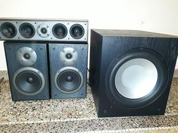 vendo impianto surround alta qualità, costituito da amplificatore, 2 casse frontali, 2 casse posteriori, cassa centrale, subwoofer. con i suoi cavi di collegamento, più un cavo coassiale per collegare un lettore dvd/blue ray. in eccellenti condizioni, tutte le membrane perfettamente intatte. -amplificatore Marrantz SR400N2B con telecomando -centrale Jamo 5 vie E6CEN -2 frontali Jamo 2 vie E610 -2 posteriori Indiana Line 3 vie TH211 -subwoofer Jamo J12SUB +cavo subwoofer di qualità 3m OEHLBACH +cavo coassiale WBT +cavi di collegamento Per appassionati, vero affare.....grazie.