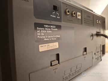 Stereo trevi 9623 , funzionante, doppia cassetta, equalizzatore, radio am, fm, fm stereo , alimentazione a rete o batterie