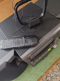 Stereo JVC nelle seguenti condizioni: casse perfettamente funzionanti con fili molto lunghi come da foto n. 6. Radio perfettamente funzionante con antenna sia corta che lunga come da foto n. 5. I 3 lettori cd hanno i carrellini funzionanti ma non riconoscono i cd probabilmente per l'inutilizzo dato che fino a qualche mese fa li utilizzavo regolarmente. Da sistemare. Le 2 slot delle audio cassette non verificate (non ho audio cassette). Possibilità di collegare lo stereo al cellulare tramite Jack per ascoltare musica. Il volume è regolabile solo dal telecomando, che è perfettamente funzionante. Con qualche piccola riparazione (praticamente solo ai lettori cd), può funzionare completamente.