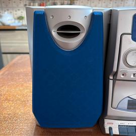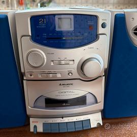 CD, cassette con registrazione, radio FM/AM con 21 preset. Due casse in legno da 5W. Telecomando originale incluso. Tutto funzionante, ottime condizioni. Cavo di alimentazione nuovo. Prezzo trattabile.