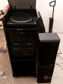 Vendesi stereo monoblocco Kenwood con giradischi 33/45 giri completo di mobile e due casse come da foto. Perfettamente funzionante. Solo lettore cd non funzionante.