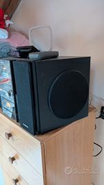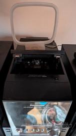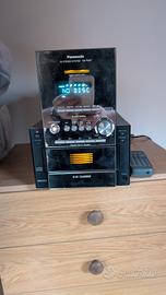mini stereo compatto Panasonic, con caricatore 5 CD, radio e tape tutto funzionante eccetto il tape che si è seccata la cinghia di gomma, basta sostituirla, completo di casse a tre vie bellissime in legno.