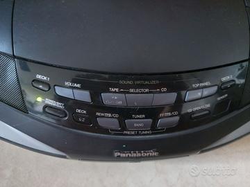 Stereo Panasonic RX-ED77 Boombox totalmente funzionante (vedi video). Lettore CD, radio e doppio lettore per audiocassette. Alcuni tasti sono leggermente cancellati per normale usura. Il deck 1 si apre cliccando un paio di volte. Solo RITIRO A MANO in ZONA