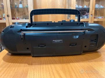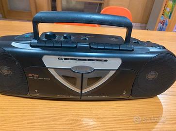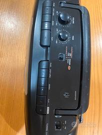 Funzioni principali: registrazione diretta, doppia piastra per copia rapida, microfono integrato, regolazione volume e toni, antenna telescopica, maniglia per il trasporto.