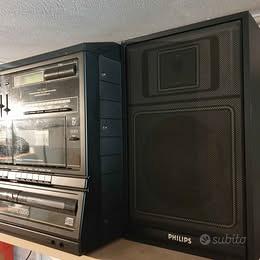 Stereo HI-FI Philips del 1987, venduto come VISTO & PIACIUTO agli appassionati di oggetti vintage, sicuramente da revisionare, con Piatto per Dischi a 45 e 33 giri, Radio, 2 scomparti per Musicassette e CD, si accende, dà qualche segnale ma è da ripristinare !