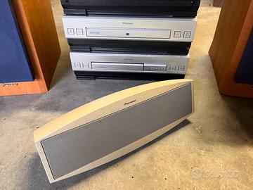 Stereo pioneer amplificato con sistema dolby surround , audio 5 casse . Radio, cd, cassetta + entrate aux e telecomando Funzionante con lievi segno di usura