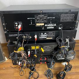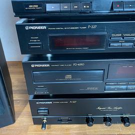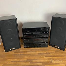 Vendo impianto stereo completo Pioneer composto da amplificatore, lettore CD, doppia piastra cassette e casse originali come da foto. L’impianto è perfettamente funzionante in tutte le sue parti. Esteticamente si presenta in buone condizioni generali, con normali segni di usura e piccoli graffi poco visibili dovuti al tempo. Le casse sono in buono stato, con diffusori e membrane integri e perfettamente funzionanti, senza danni. Ideale per appassionati di hi-fi o per chi cerca un sistema stereo completo dal suono caldo e potente. Disponibile per prova