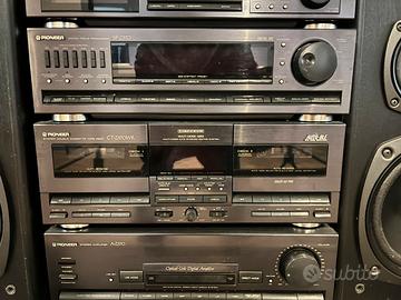 Sistema hifi stereo pioneer Z570,perfettamente funzionante,originale anni ‘80,con casse Kenwood.cd doppio carrello con cavo fibra ottica.