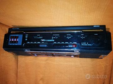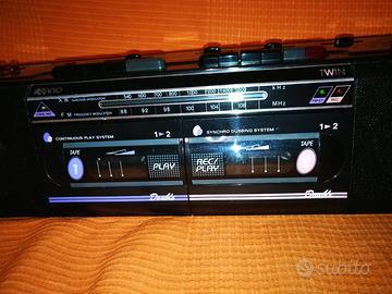 Stereo portatile Irradio anni 80-90, doppio alloggiamento per musicassette, radio, va con pile e con cavo (non in vendita con l'apparecchio), una cassa non funziona bene (già indicate parti guaste nelle condizioni dell'oggetto), Ritiro di persona o spese di spedizione a parte, euro 30,00