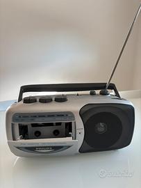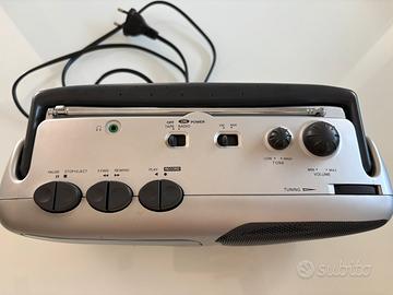 Stereo radio cassette recorder Philips AQ4150, perfettamente funzionante, usato in buone condizioni. Radio FM/AM con antenna, riproduttore audiocassette con funzione registratore, alimentazione 220 volt con cavo compreso, oppure a batterie (non incluse).