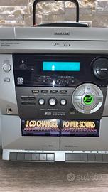 stereo Samsung con 2 casse, telecomando e istruzioni. funzionano correttamente solo la radio e un lettore cassette. Da rimettere elastico per piatto CD. Casse perfettamente funzionanti e utilizzabili anche da sole