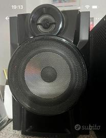Potenza: Circa 190-230 W RMS, con tecnologia Giga Sound Blast per enfatizzare i bassi. Funzioni: Include lettore CD/DVD, sintonizzatore radio FM/AM e ingresso ausiliario (AUX). Connettività: Porta USB per riproduzione e registrazione, e Bluetooth per streaming wireless. Modalità Audio: Include un'equalizzazione specifica per lo sport ("Football Mode") per enfatizzare il tifo o il commento. Karaoke: Ingresso microfono con funzione mixer karaoke. CONSEGNA A MANO