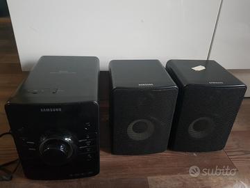Stereo Samsung, perfettamente funzionante, vedi bene foto di una cassa che ha una piccola rottura nell'angolo